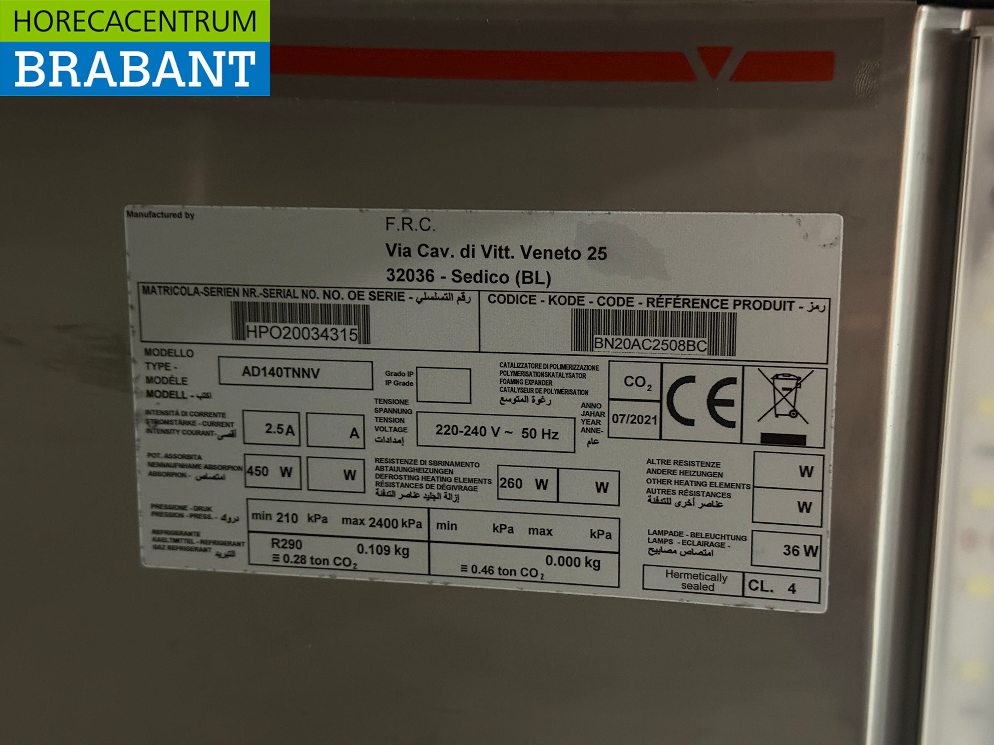 – Réfrigérant : R290