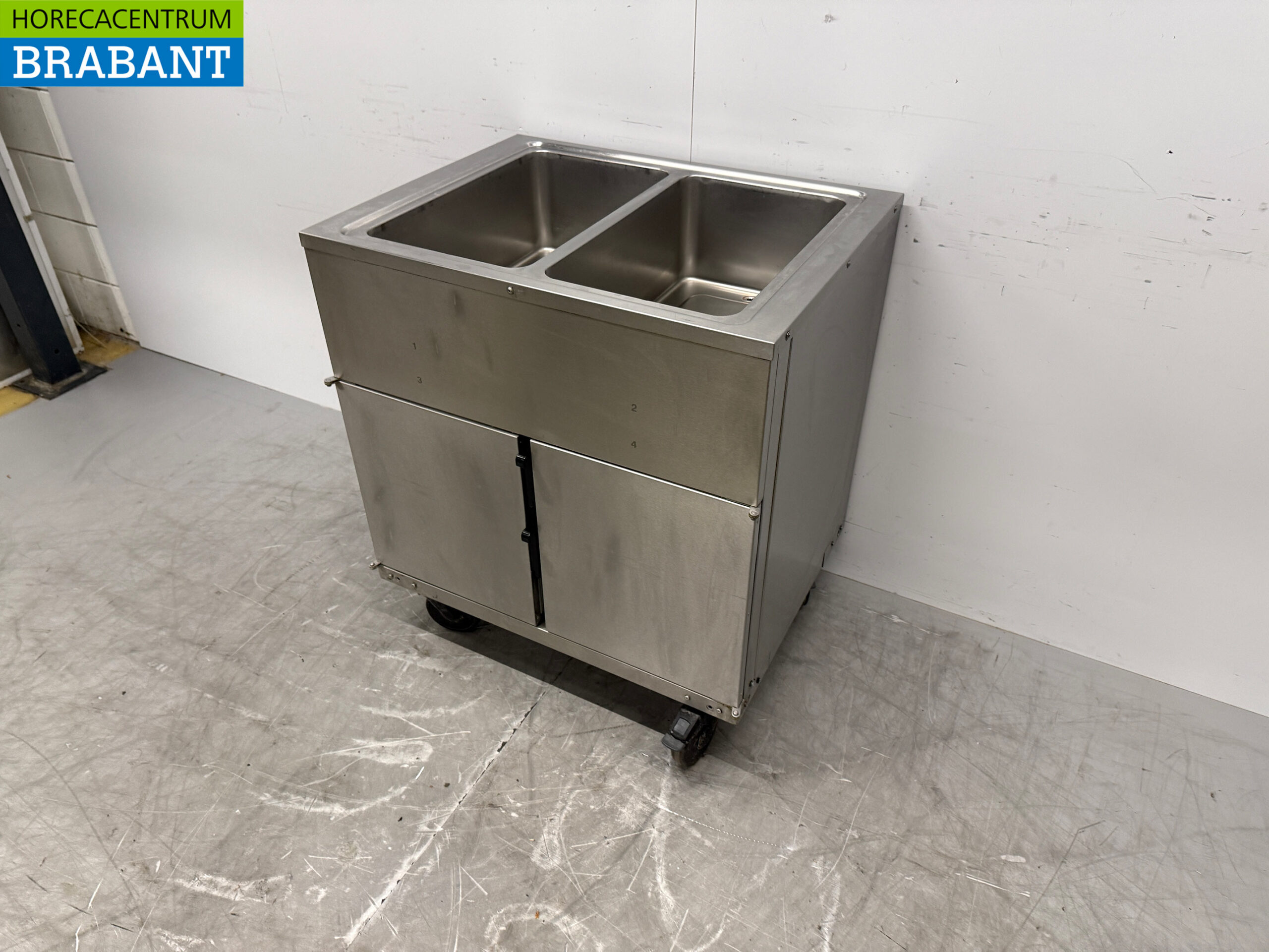 Bain-Marie mobile Rieber en acier inoxydable 2 x 1/1 GN avec armoire chauffante 230V Horeca