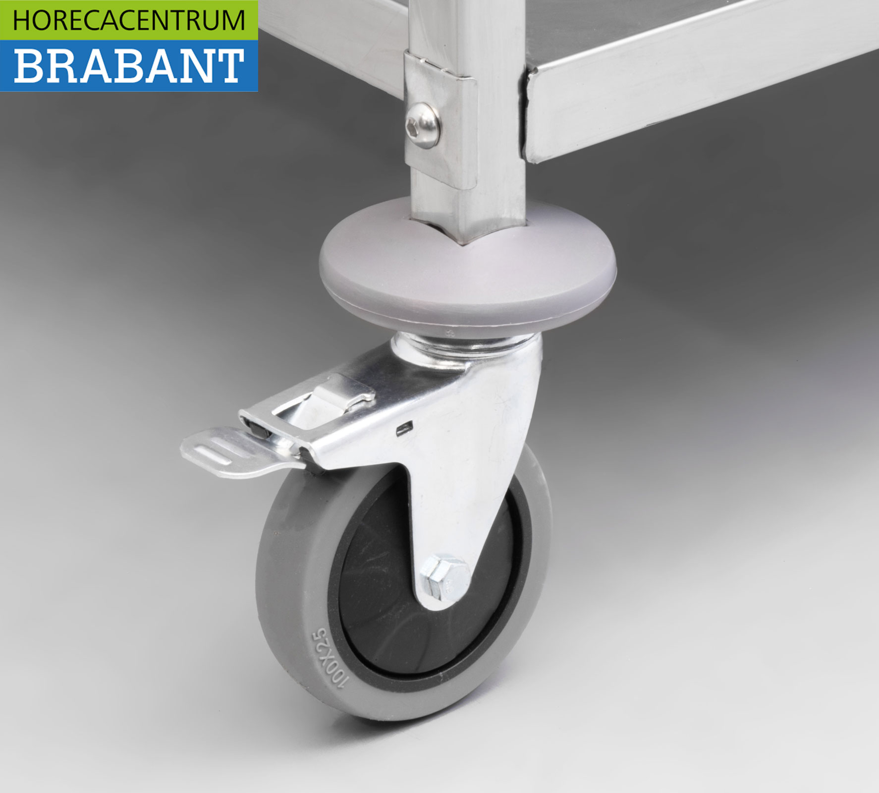 Les trois plans de travail en acier inoxydable sont renforcés dans les coins et comportent une barrière contre l’eau, ce qui réduit les éclaboussures pendant les déplacements. Les tubes carrés et les pieds à bords arrondis offrent une stabilité et une protection accrues.