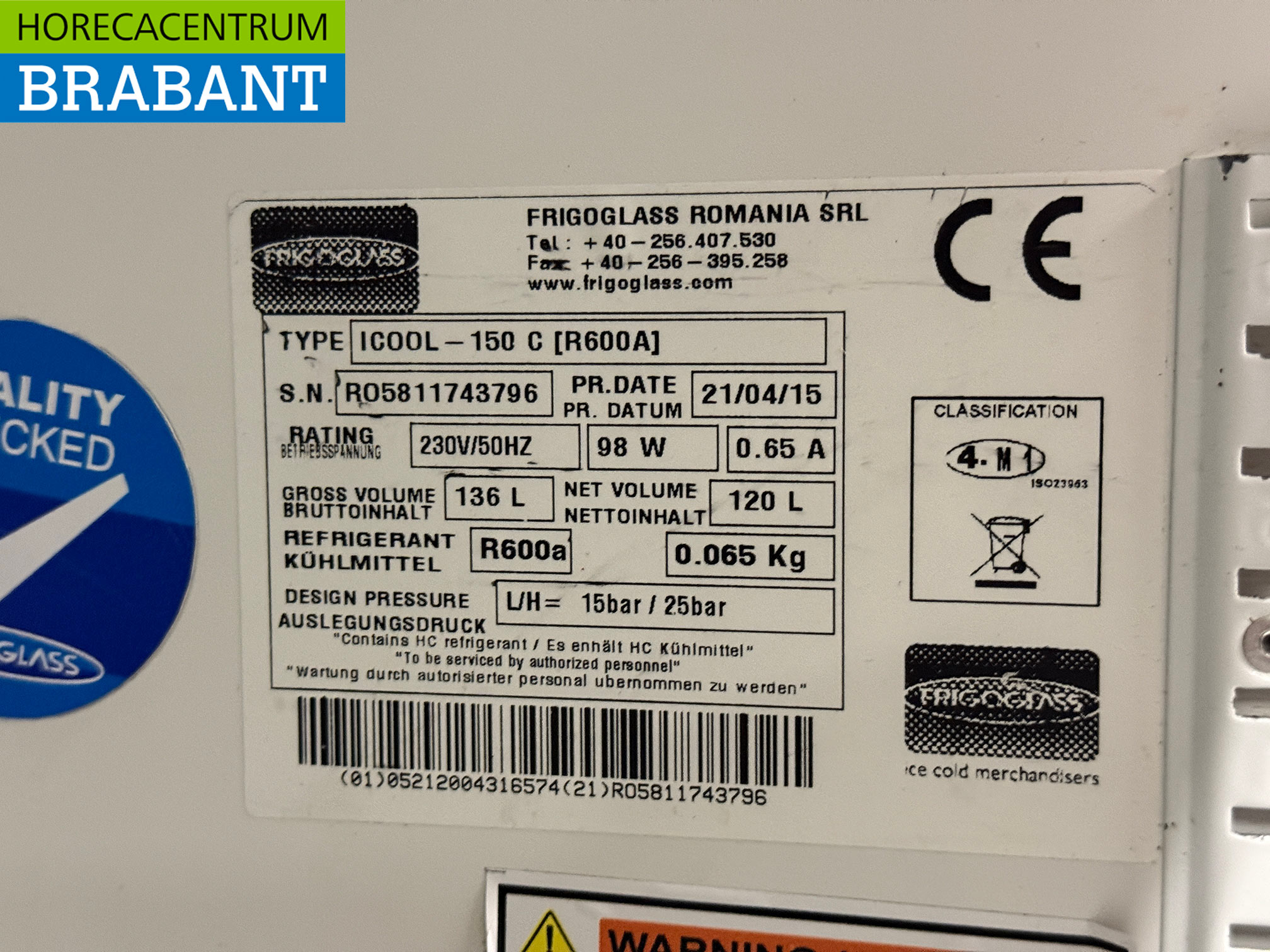 – Réfrigérant : R600a