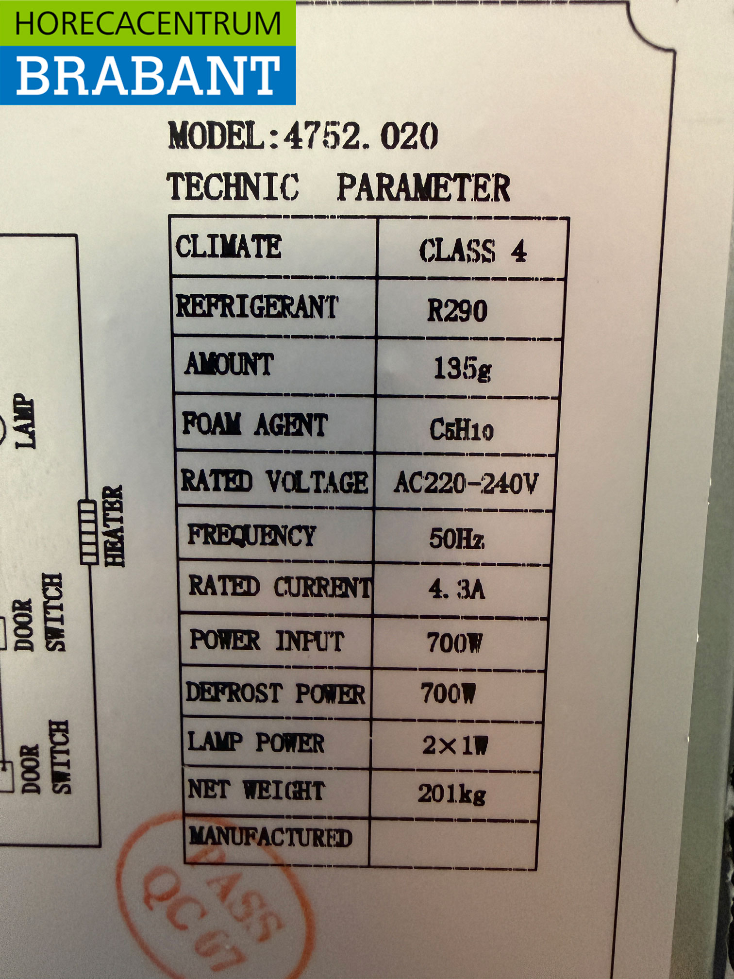 – Réfrigérant : R290