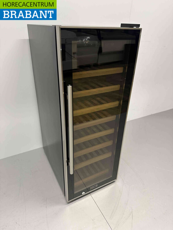Réfrigérateur à vin noir luxueux et extrêmement silencieux de la marque HCB. Le réfrigérateur à vin dispose d’une zone avec une plage de température de 5 à 20 degrés, qui convient aussi bien au vin rouge qu’au vin blanc. Le réfrigérateur à vin est doté d’étagères en bois extensibles et d’une porte à double vitrage qui empêche les rayons UV de pénétrer dans l’appareil. Le réfrigérateur est également équipé d’un éclairage LED et d’un écran LED éclairé. Comme le réfrigérateur utilise la technologie du compresseur, il est très fiable. Ce magnifique réfrigérateur à vin peut contenir jusqu’à 43 bouteilles.