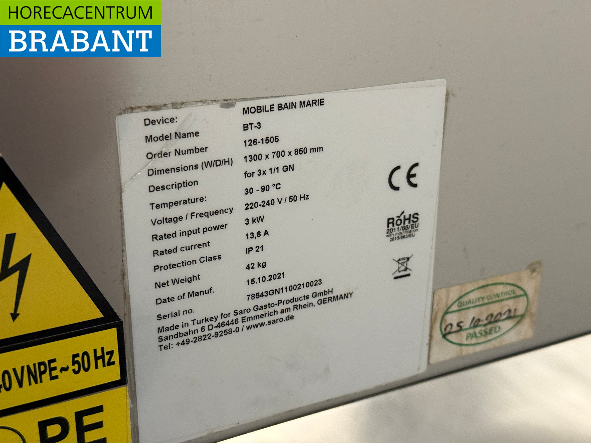 Saro Mobile Bain Marie en acier inoxydable 3 x 1/1 GN 230V Horeca