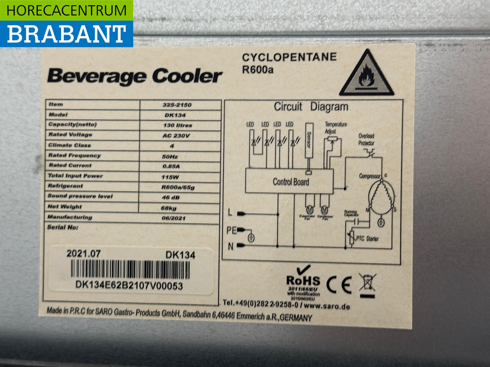 – Réfrigérant : R600a